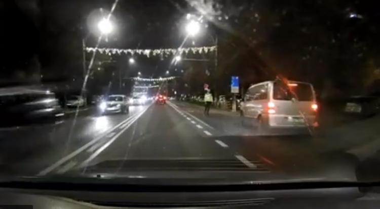 Camera de bord a unui autoturism a surprins perfect momentul în care şoferul iese din sensul giratoriu şi nu se încadrează pe banda dedicată autovehiculelor. Şoferul îşi continuă drumul pe banda dedicată CTP şi taxiurilor până când un echipaj de Poliţie îi iese în cale şi îl trage pe dreapta.
