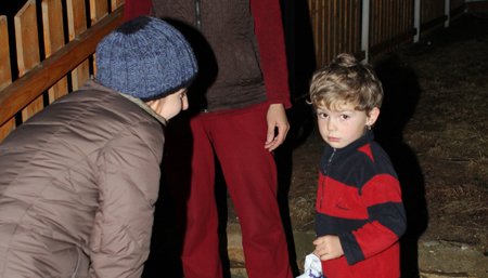 „Deși teoretic știam, am fost șocați de cât sunt de împrăștiate satele de munte, de cei 30 cm de zapadă și de ploaia care cădea continuu. În Poiana Horii, de exemplu, am stat aproximativ 3 ore pentru a reuși să distribuim cadouri copiilor din numai 10 case. Am ținut neapărat să găsim o familie cu 3 copii care locuia într-un vârf de deal. Nu aveau curent, ca mulți dintre cei pe care i-am vizitat. Oamenii primitori, au insistat să ne arate copiii, deși dormeau, și ne-au invitat să rămânem la o cafea, nu au ezitat să își exprime verbal uimirea la textul nostru: «A venit Moș Crăciun». I-am rugat pe localnici să ne însoțească la casele unde știu că sunt copii. Nu cred că ne-am fi descurcat fără ei, având în vedere că satele sunt atât de întinse și strada paralelă înseamnă adesea dealul următor.