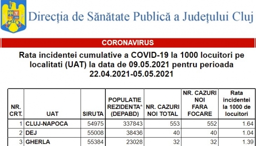 Clujul este în fiecare zi cu un pas mai aproape de scenariul VERDE, rata incidenței COVID fiind în continuă scădere. Vezi și incidența localităților din apropierea Clujului.