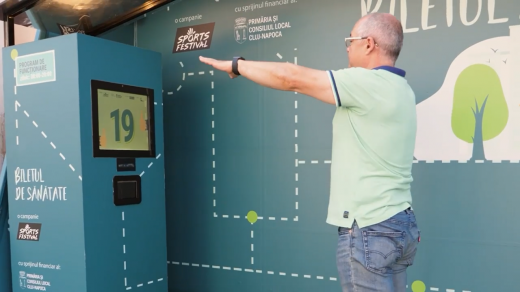 Primarul Clujului s-a filmat joi în timp ce a testat automatul care eliberează bilete de călătorie gratuit în schimbul a 20 de genuflexiuni, amplasat la stația Memorandumului.