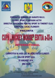 Nu mai puțin de 385 de copii au participat, sâmbătă, în localitatea Floreșit (jud. Cluj), la ediția a 11-a a Cupei „Mickey Mouse", care a deschis calendarul competițional al federației Române de Karate WKC.